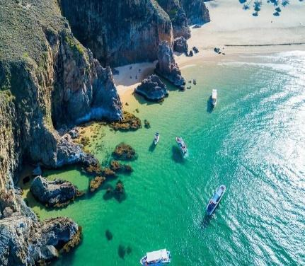 - Dãy đá tự nhiên hình cánh cung, nước biển len vào tạo hồ nhỏ rất đẹp.