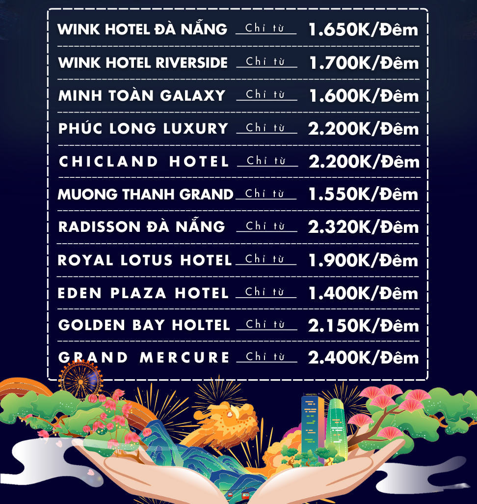 Để có trải nghiệm trọn vẹn, bạn có thể đặt tour trọn gói xem pháo hoa tại Đà Nẵng cùng Bình An Tour, bao gồm: